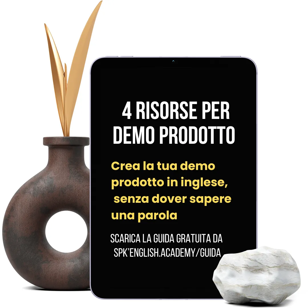 Scarica GRATIS 4 Risorse per Demo Prodotto" e scopri come creare una demo in inglese con l'AI in 30 minuti e con soli 10€, senza conoscere l'inglese!
